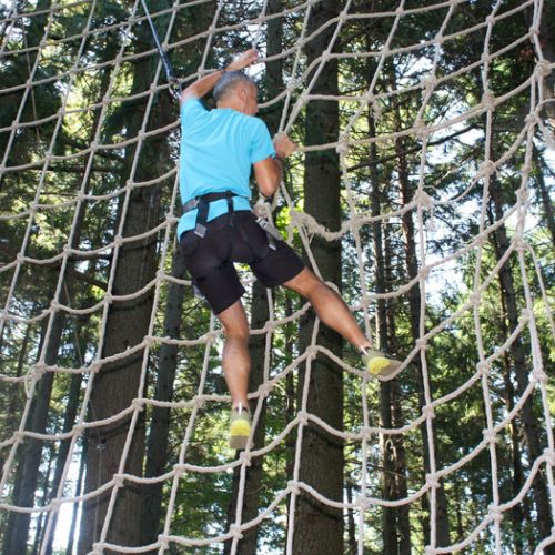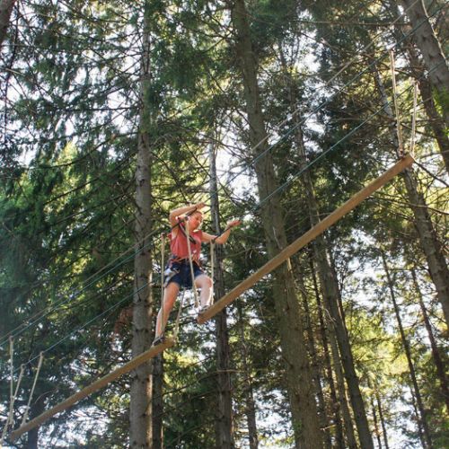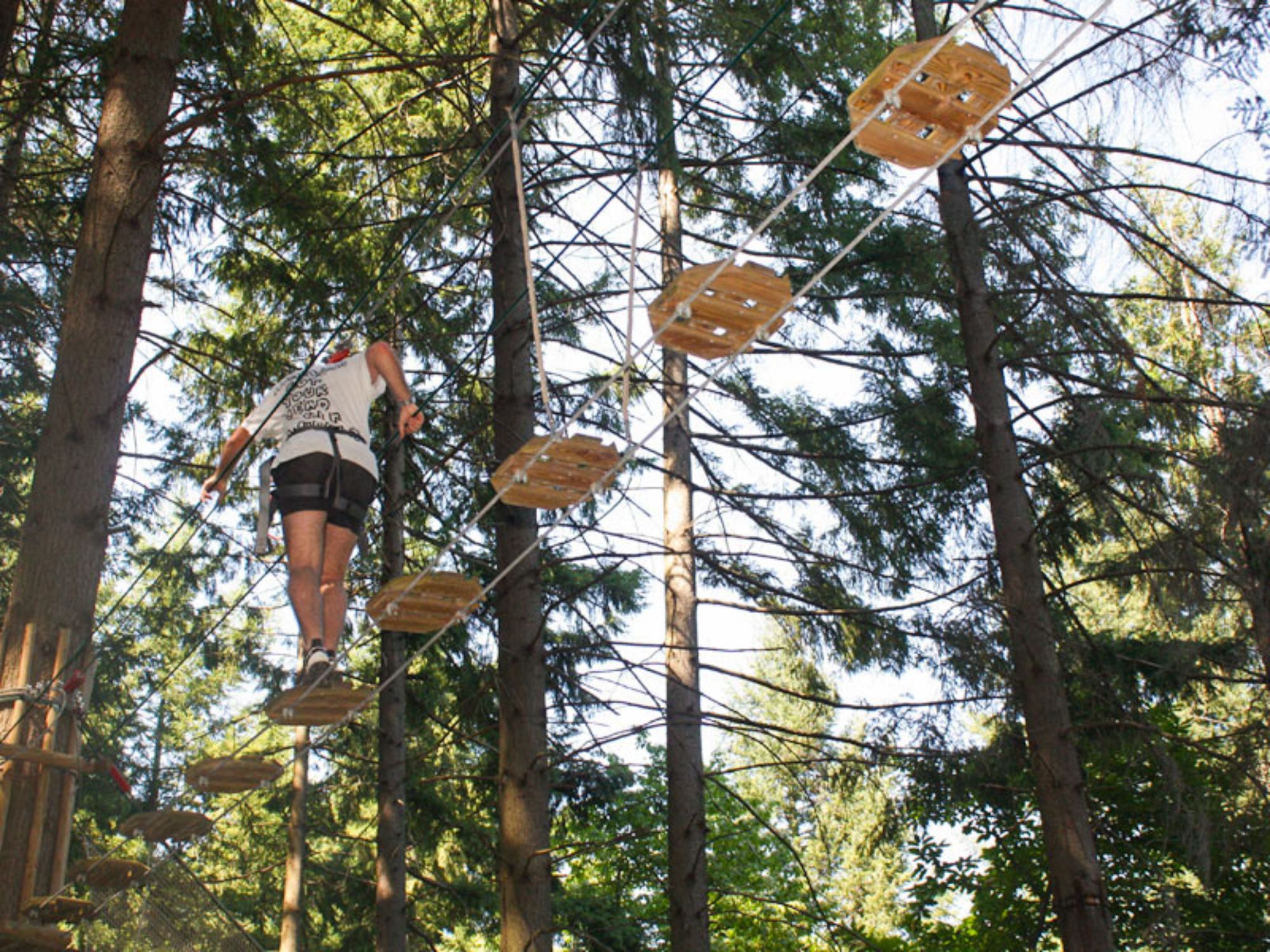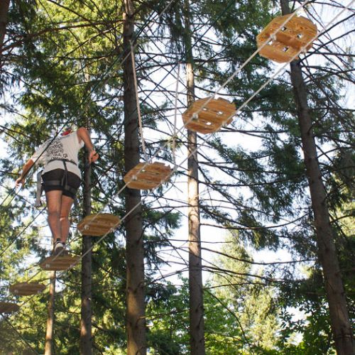 Discover our diverse tree courses in Jaujac near Aubenas, crossing suspension bridges, hurtling down breathtaking zip lines and overcoming thrilling challenges.